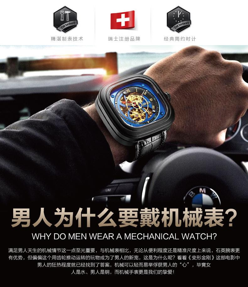 On-time Delivery: If you do not receive your purchase within 60 days, you can ask for a full refund before order completion (when you click "Confirm Order Received" or exceed confirmation timeframe).Brand Mirror Square Burei Geneva Seven Miyota Sapphire Skeleton Home Calfskin Automatic Self-wind Watch Gray